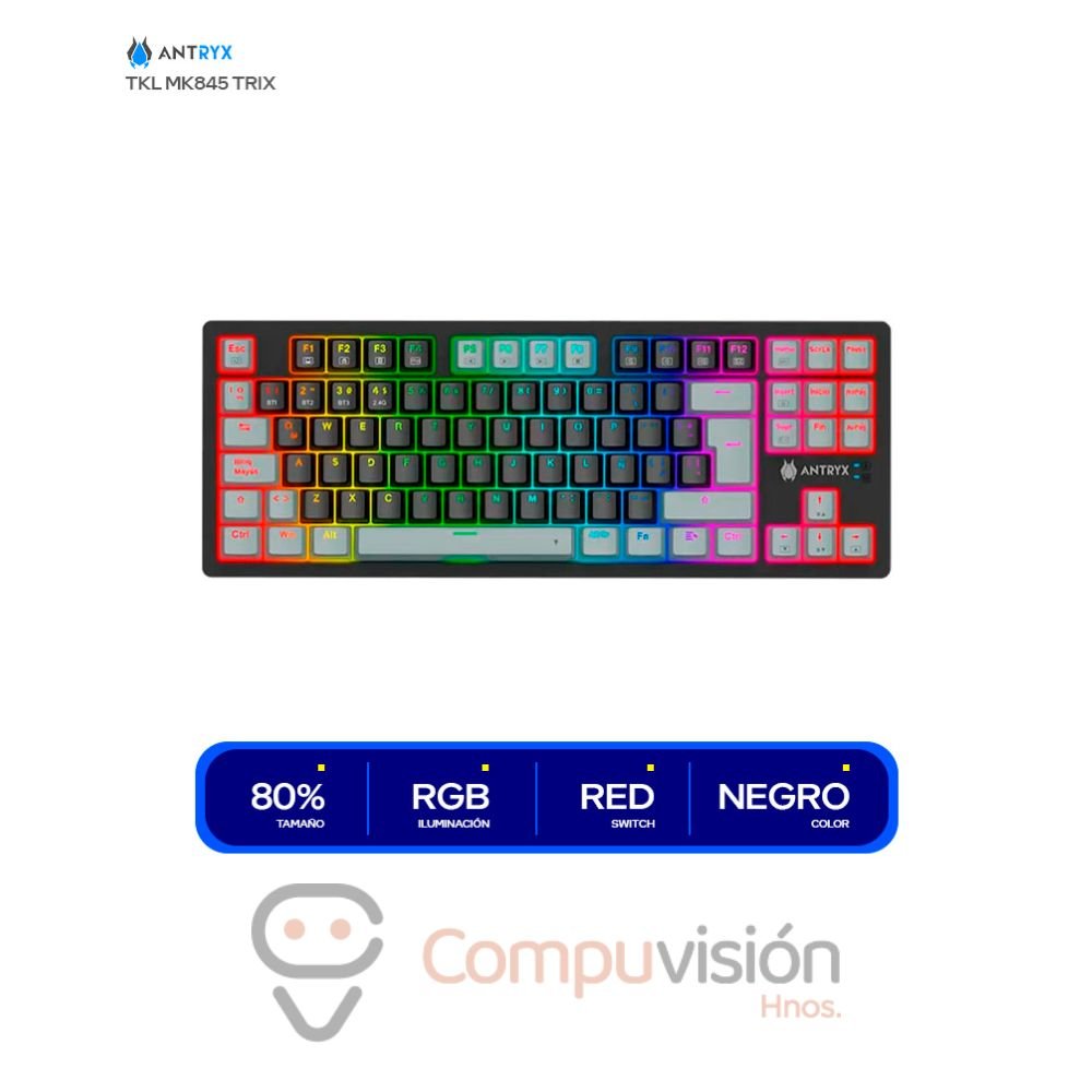 TECLADO GAMER ANTRYX MK 845 TRIX BLACK/GRIS RGB 80% WIRELESS SWITCH RED ESPAÑOL