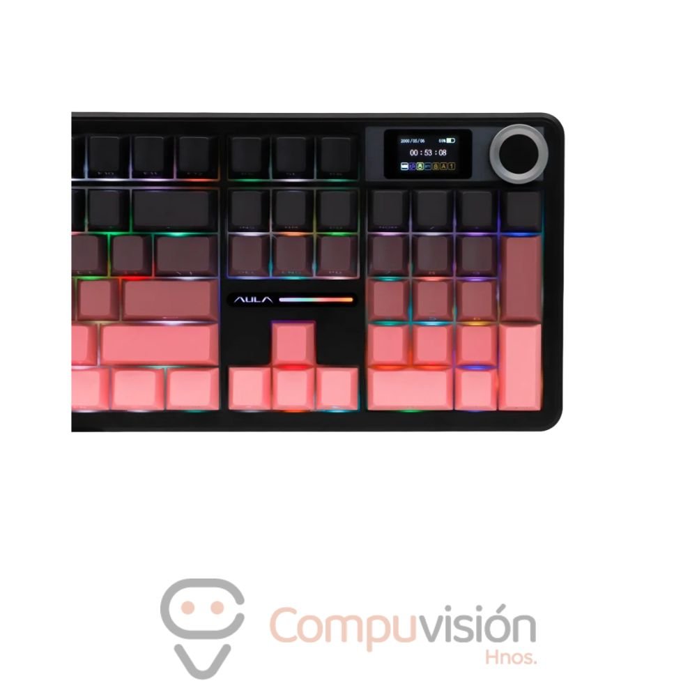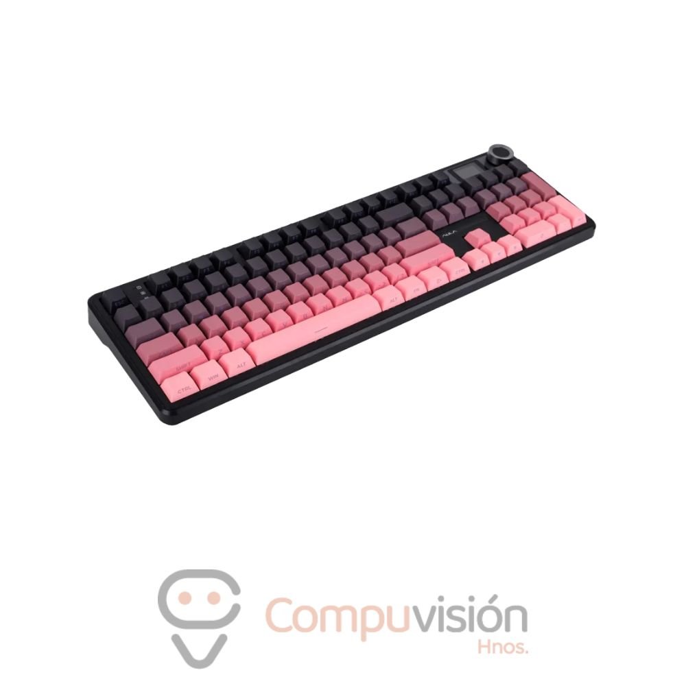 TECLADO GAMER AULA F108 PRO WIRELESS 100% GRADIENTE PINK SWITCH GRAY WOOD V3 ENGLISH