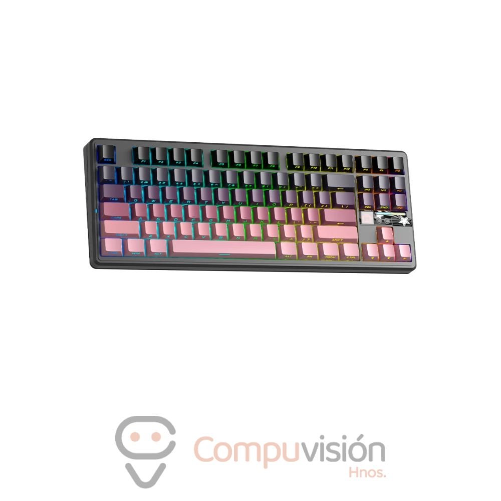 TECLADO GAMER AULA F87 PRO V2 BLACK+GRADIENT+PINK SIDE P STAR VECTOR WIRELESS/BT ENGLISH