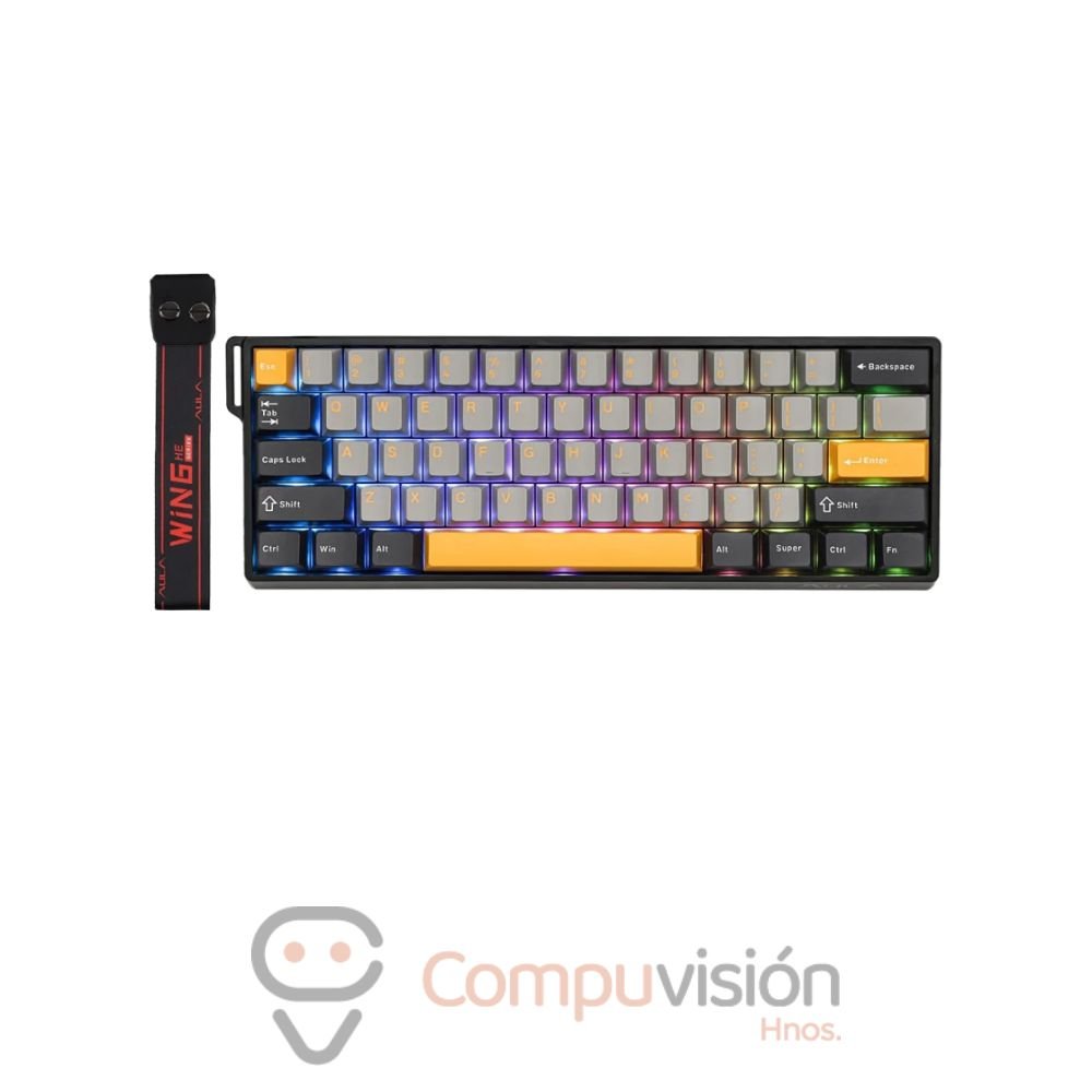 TECLADO GAMER AULA WIN60HE MAX 60% DARK+GREY+LIGHT GRAY+YELLOW-MAGNETIC/MAGNETICO SWITCH ENGLIS CABLE USB